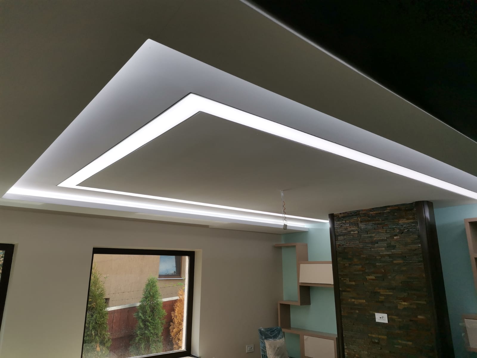 - Парящие и контурные потолки создают в комнате особую атмосферу. Делают пространство более приватным. Подходят для спальни или в качестве дополнительного источника света в гостиной.
