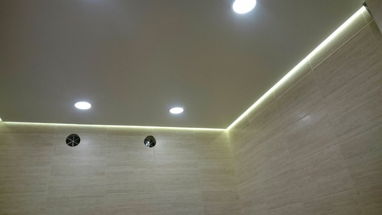 - Точечные светильники, световые линии – базовый верхний свет. Хорошо сочетаются с любыми типами акцентного или рассеянного освещения. Хороши в любых помещениях.